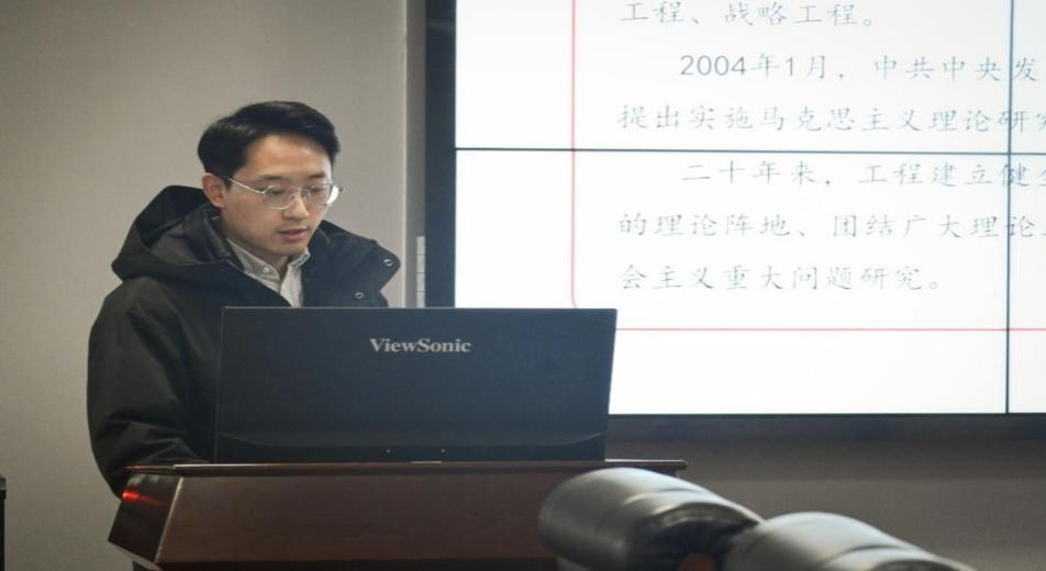随后,魏心阅同志领学了习近平总书记对新时代马克思主义理论研究和建设工程的重要指示精神。他介绍到,马克思主义理论研究和建设工程工作会议于2024年11月29日在京召开,会上传达了习近平同志做出的重要指示:新时代新征程,要坚持守正创新,聚焦学习宣传贯彻习近平新时代中国特色社会主义思想,着力深化体系化、学理化研究阐释,着力增强学习宣传的针对性、实效性,推动党的创新理论更加深入人心。要坚持“两个结合”,扎根中国大地、赓续中华文脉、厚植学术根基,深入研究以中国式现代化全面推进强国建设、民族复兴伟业实践中的重大问题,加快构建中国哲学社会科学自主知识体系,培养高素质理论人才,为推进马克思主义中国化时代化作出更大贡献。
