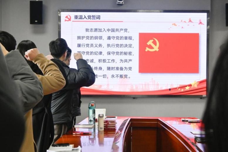 活动进入第一项议程,全体党员在王珏同志的引领下,庄严肃穆地重温入党誓词。党员们回溯入党时的初心与使命,理想信念在这庄重的仪式中进一步坚定。