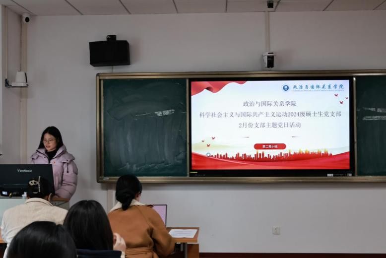 2月24日,国际政治系2023级硕士生党支部二月主题党日活动于文科科研楼南楼801教室开展。本次活动由支部书记张楠凤主持,第二党员小组胡玉娜领学,国际政治系2023级硕士生党支部全体党员参与学习。