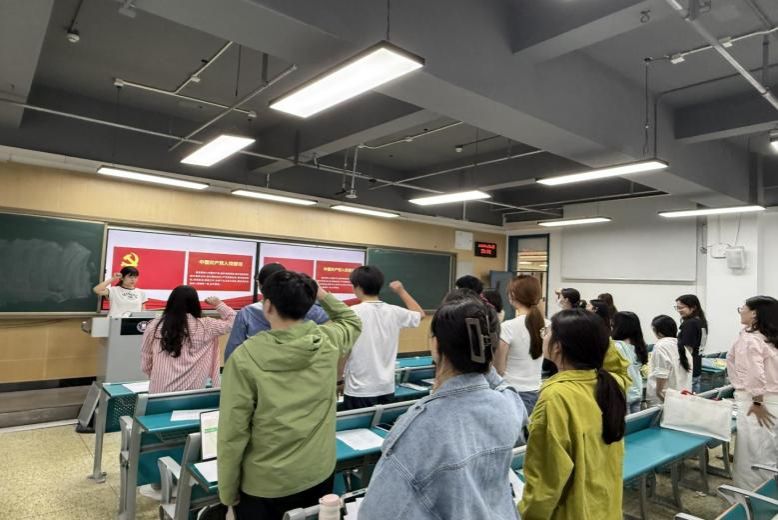 活动进入第一项议程,全体党员在宋婉约同志的带领下,肃穆地重温入党誓词。通过回顾入党初心与使命,以庄严的仪式化教育,进一步巩固和强化了党员的理想信念根基。