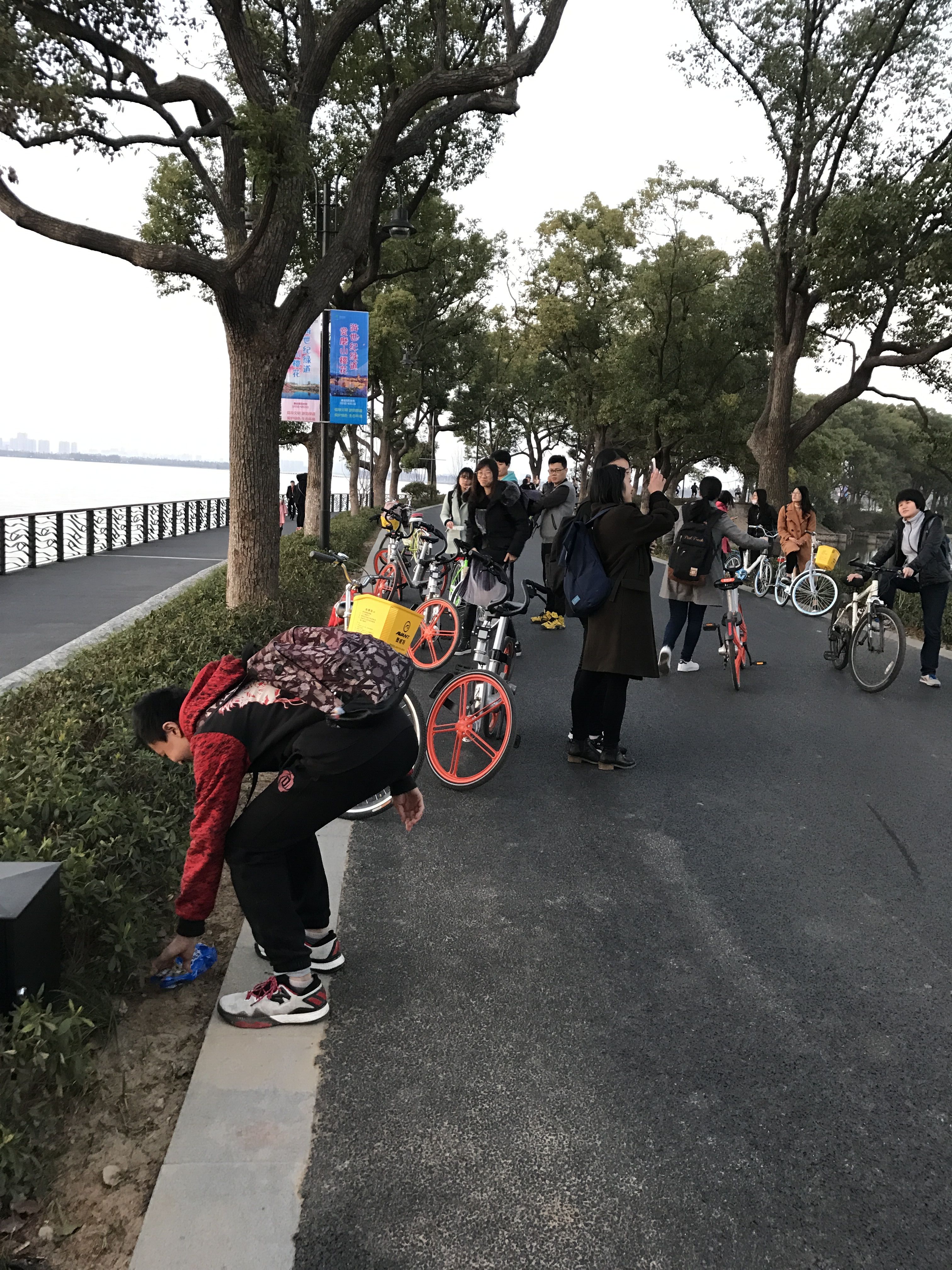 支部成员进入东湖大道后,都感叹于东湖景色的美丽,但在欣赏美景的同时,大家也在时刻关注绿道两旁的环境卫生,随手捡起丢弃在绿道上的垃圾,为保持优美的东湖景色贡献自己的一份力量,同时将志愿服务精神落实到生活的细节之中。