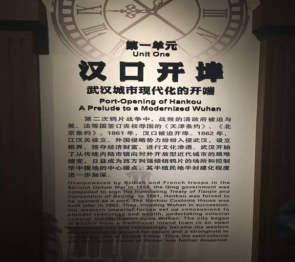 支部一行于下午14时从学校出发,至江汉关博物馆。参观队伍由支部书记刘孝杰带领,根据展览分区介绍图分区参观。首先参观了展览的第一单元——汉口开埠。该部分展示了武汉城市化现代化的开端。武汉是在战争之后被迫开埠的,当年的江汉关和今天的江汉关博物馆就讲述着那些离我们很远但是我们必须记住的历史。