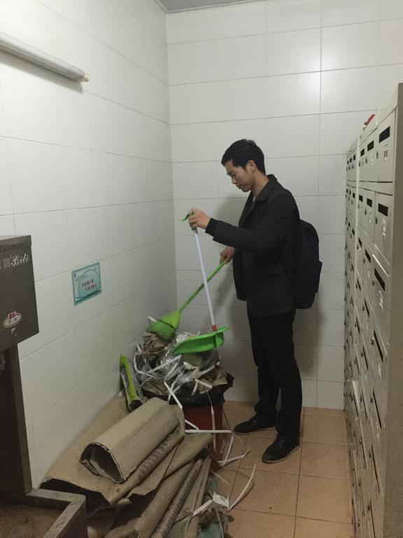 支部同学对平日上课教室313进行卫生大扫除,清洁教室地面、将桌椅合理安置,收拾垃圾,擦黑板。同时,对三楼走廊进行了卫生清理,将走廊拖洗干净,为全院师生提供一个干净卫生的工作、学习环境。