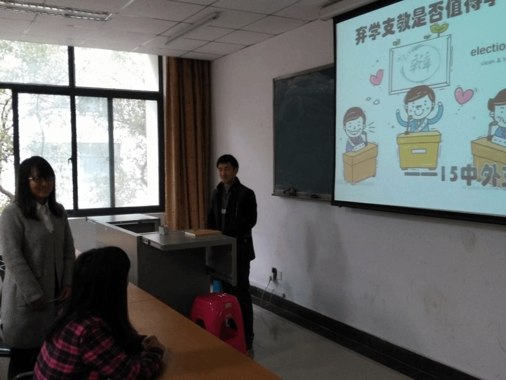 2016年3月16日下午,我院2015级中外支部在国际交流园区2号楼 315教室召开了开展“学本禹·讲奉献”主题活动——“弃学支教是否值得学习”主题辩论会。