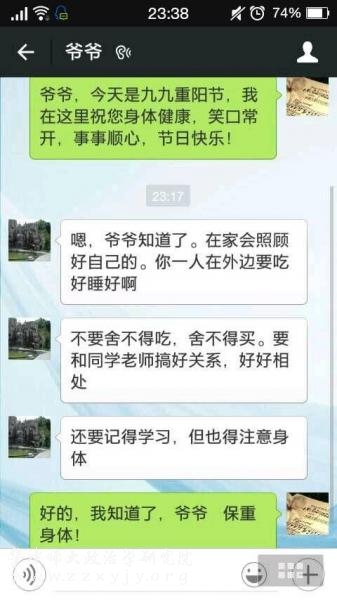 同学们纷纷表示,虽然自己身在异乡,很难在重阳节当天当面对爷爷奶奶、外公外婆表达自己的感恩之情,但借助短信、微信、QQ以及电话等方式,不仅表达了自己的诚挚谢意,也避免了当面的尴尬情形。