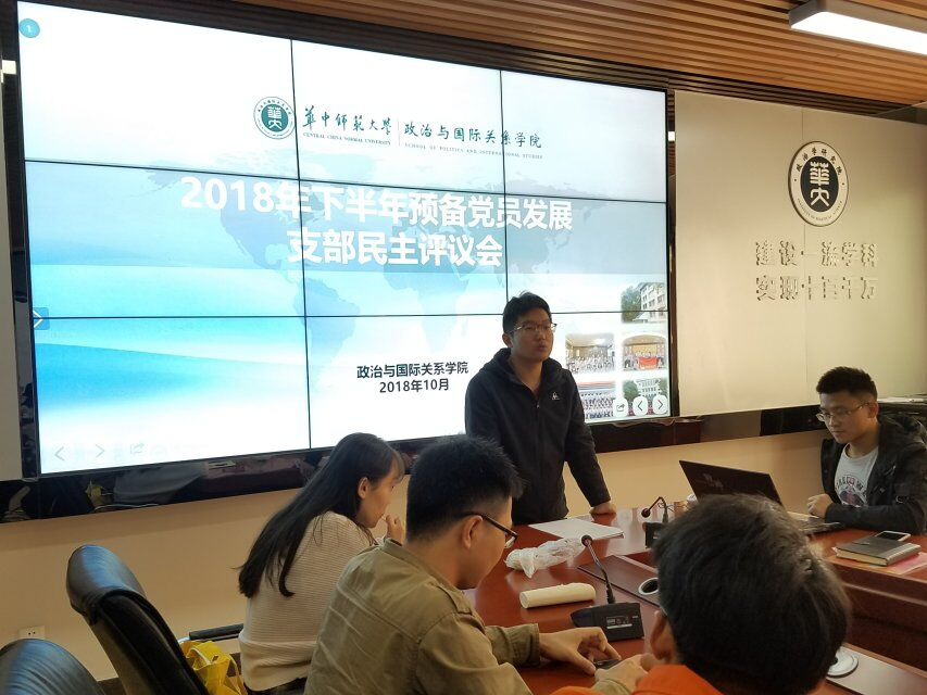 评议会开始之前,孙延松老师向大家宣读了《政治与国际关系学院2018年党员发展民主评议量化标准》,他指出,各位同学要秉承公平公正原则,根据评分细则对八位参评人员做出客观评价。