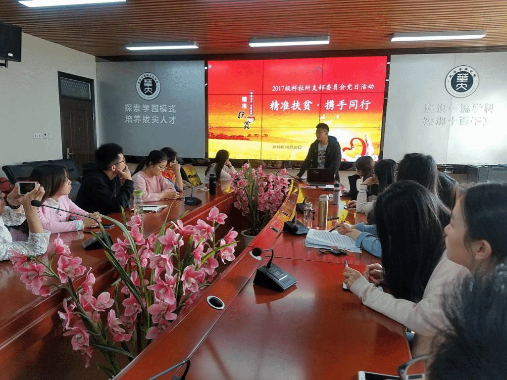 (通讯员 陈质晶)为营造人人关心扶贫、支持扶贫、参与扶贫的良好氛围,10月20日下午两点,政治与国际关系学院2017级科社所党支部按照学院党委部署安排,在学院309会议室组织开展了以“精准扶贫·携手同行”为主题的党日活动,2017级科社所党支部全体成员参加了此次会议,会议由支部书记赖鸿同志主持。