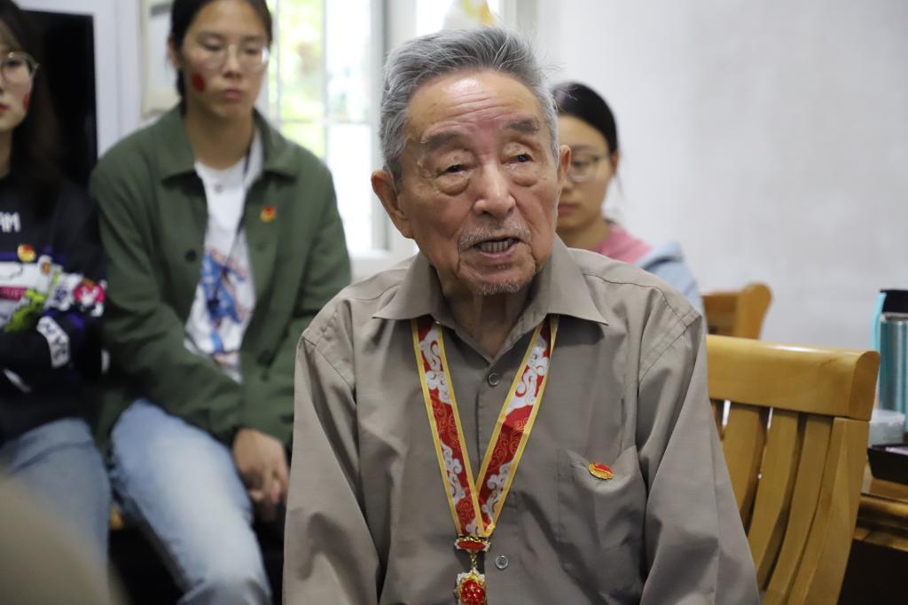 本次活动负责联络人为老战士报告团现任副团长张佑军同志。活动伊始,张团长对同学们的到来表示热烈欢迎。同学们在张团长的带领下来到92岁高龄的骆继铭老战士家中,围在骆爷爷身边,聆听骆爷爷回忆参加解放战争的峥嵘岁月和感人事迹。骆爷爷表示他在《论联合政府》、《新民主主义》等进步书籍的影响下渐渐对共产党有了深入的认识,意识到只有共产党才能救中国,此后一直追随共产党,作为一名地下党人为中国的解放不断地奋斗着。
