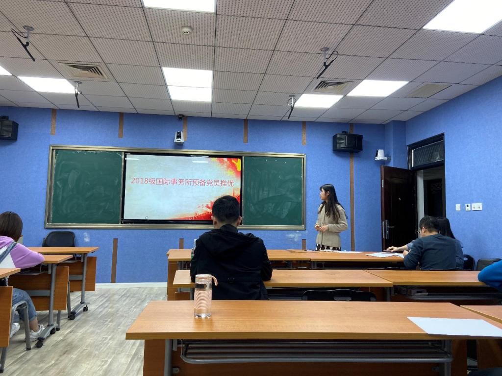 2019年11月16日,政治与国际关系学院2018级国际所在学院313教室召开预备党员推优大会,会议主题是推选新一期的预备党员。会议由支部书记杨丹主持,院辅导员孙延松老师出席,2018级国际所研究生参加。