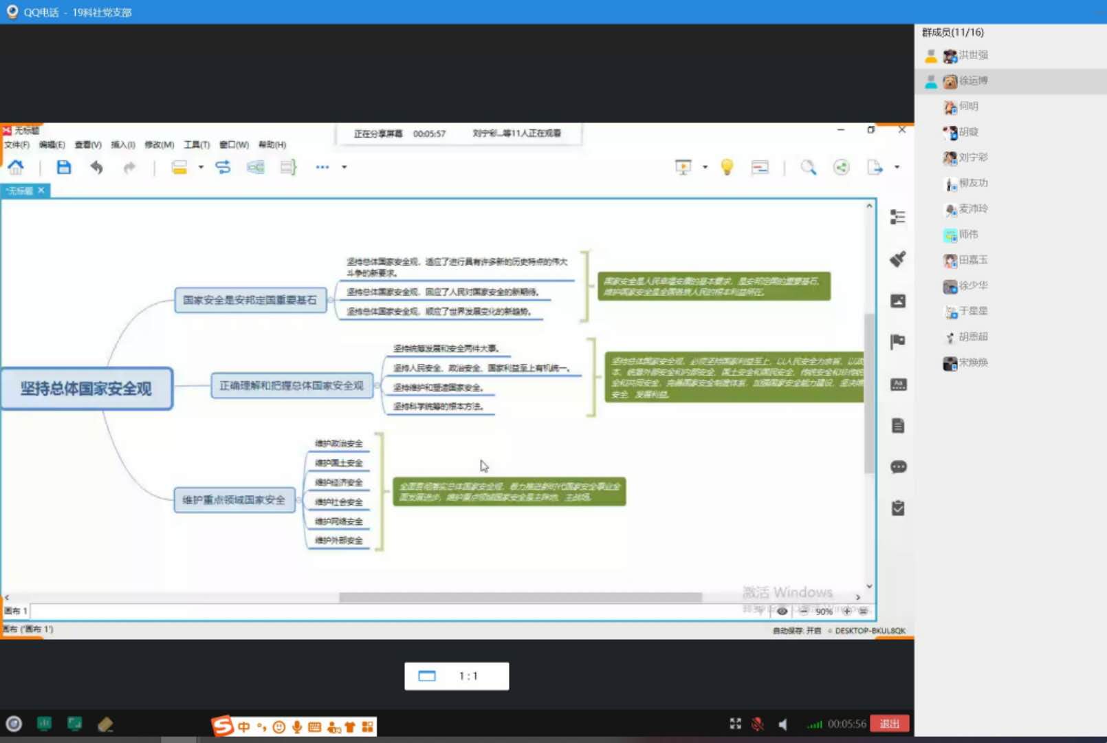 会议伊始,支部书记洪世强运用思维导图,从“国家安全是安邦定国重要基石”、“正确理解和把握总体国家安全观”和“维护重点领域国家安全”三个方面带领大家学习了习近平总书记关于总体国家安全观的重要论述精神。总体国家安全观是习近平总书记关于国家安全问题的新概括、新论断新思想,顺应了时代发展潮流,回应了人民重大关切,对于应对我国国内外安全挑战、维护国家安全和社会安定具有十分重要的指导意义。