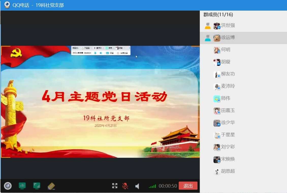 为深入学习领会习近平总书记在疫情防控期间的重要讲话精神,增强支部党员的新时代中国特色社会主义理论素养,加强支部党员之间的学习交流,推进支部的建设,科社所研究生第二党支部于四月二十一日上午十点整采用线上会议方式召开了四月份主题党日活动。本次主题党日活动采用党小组带学的新方式进行,由支部第一党小组筹备策划,支部书记支持,全体党员参加。