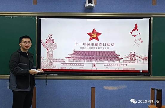 为贯彻落实《教育部直属高校党组织迎接建党100周年行动方案》精神,深入学习《中国共产党基层组织选举工作条例》,提高支部党员政治素质,增强支部活力与凝聚力,科社所研究生第二党支部十一月份主题党日活动于11月20日在学院304教室顺利开展。本次主题党日活动由支部第一党小组筹备策划,支部书记洪世强主持,全体党员参加。