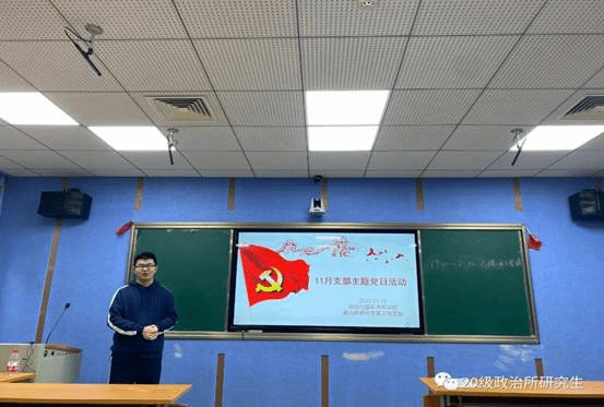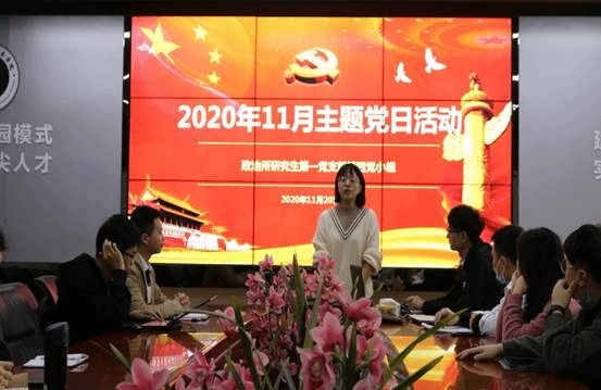2020年11月20日,政治所研究生第二党支部在学院304教室召开11月份支部主题党日活动。本次主题党日活动由组织委员罗颖同志主持。主要内容为:党支部政治功能诊断及整改;党员政治素质诊断及整改;学习《中国共产党基层组织选举工作条例》