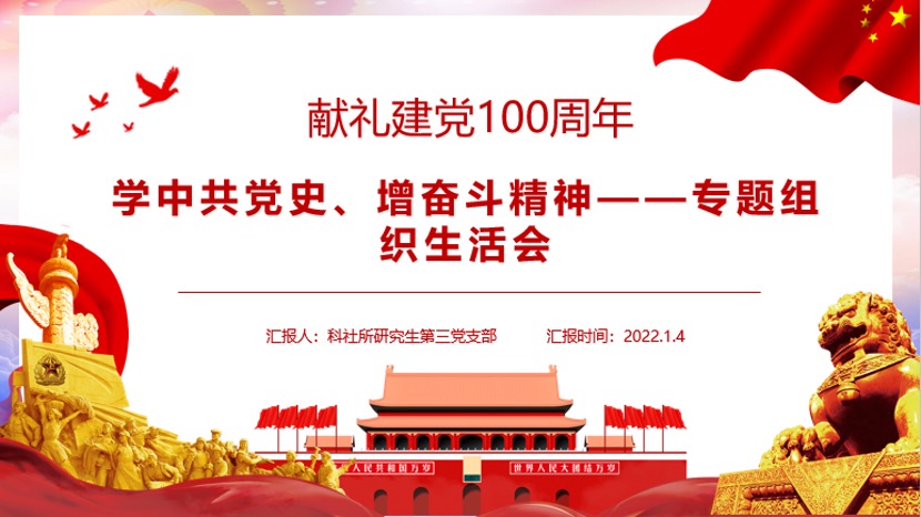 为进一步学习贯彻中央政治局党史学习教育专题民主生活会会议精神和习近平总书记重要讲话精神、学习领会党史学习教育总结大会精神,科社所研究生第二党支部12月主题党日活动于1月4日在腾讯会议举行,党支部应到成员20名,实到20名,。本次活动由支部书记洪世强同志主持。