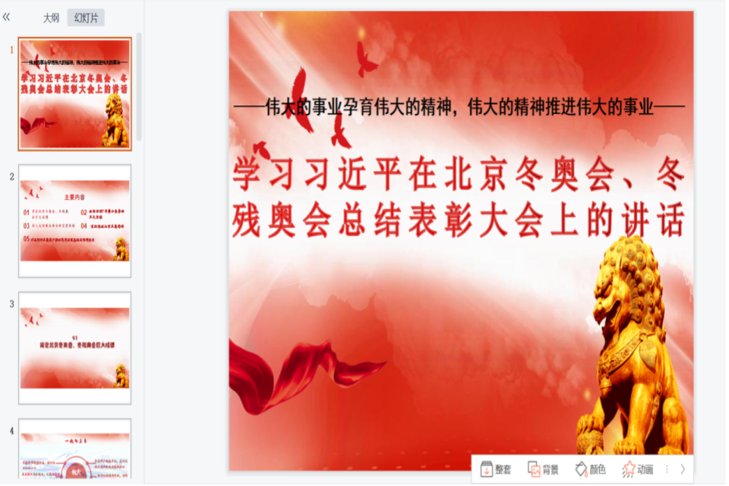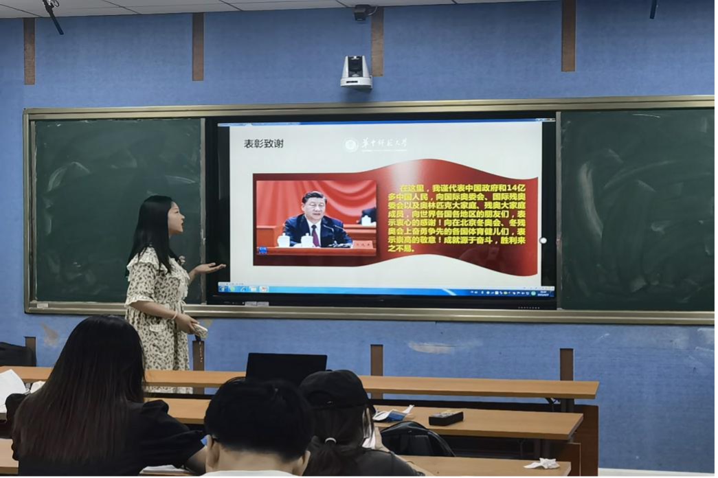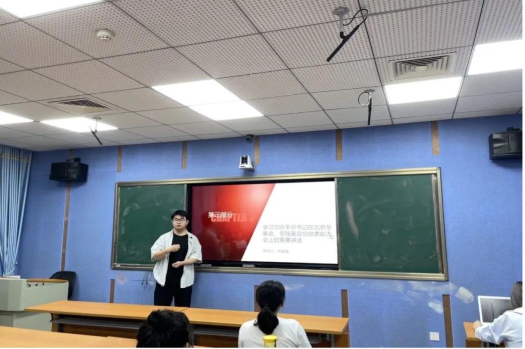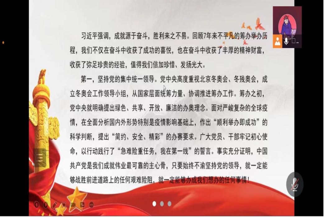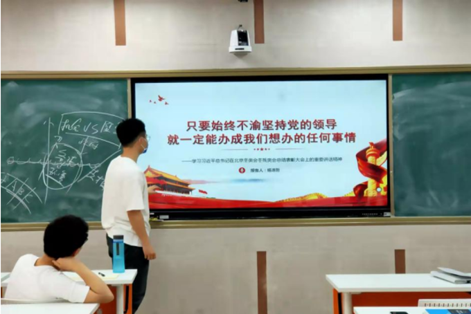 关佩然同学以PPT的方式向大家阐释了习近平总书记在北京冬奥会冬残奥会总结表彰大会的重要讲话内容。