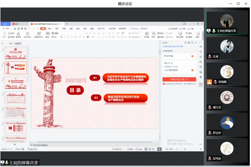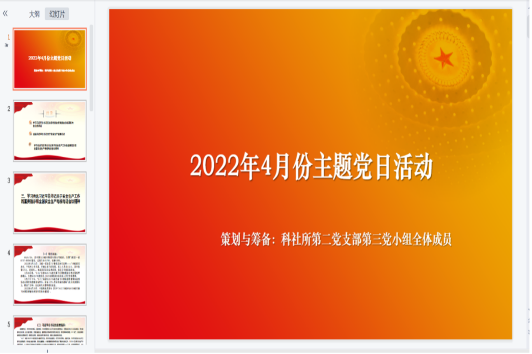 为深入学习习近平总书记在北京冬奥会冬残奥会总结表彰大会上重要讲话精神,领会习近平总书记关于安全生产重要论述并贯彻落实习近平总书记关于安全生产的重要指示精神,科社所研究生第二党支部于4月25日举行线上党日活动。会议由徐少华同志主持,支部全体党员参加。
