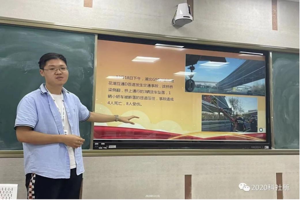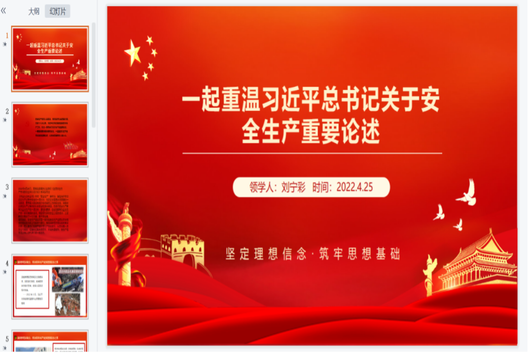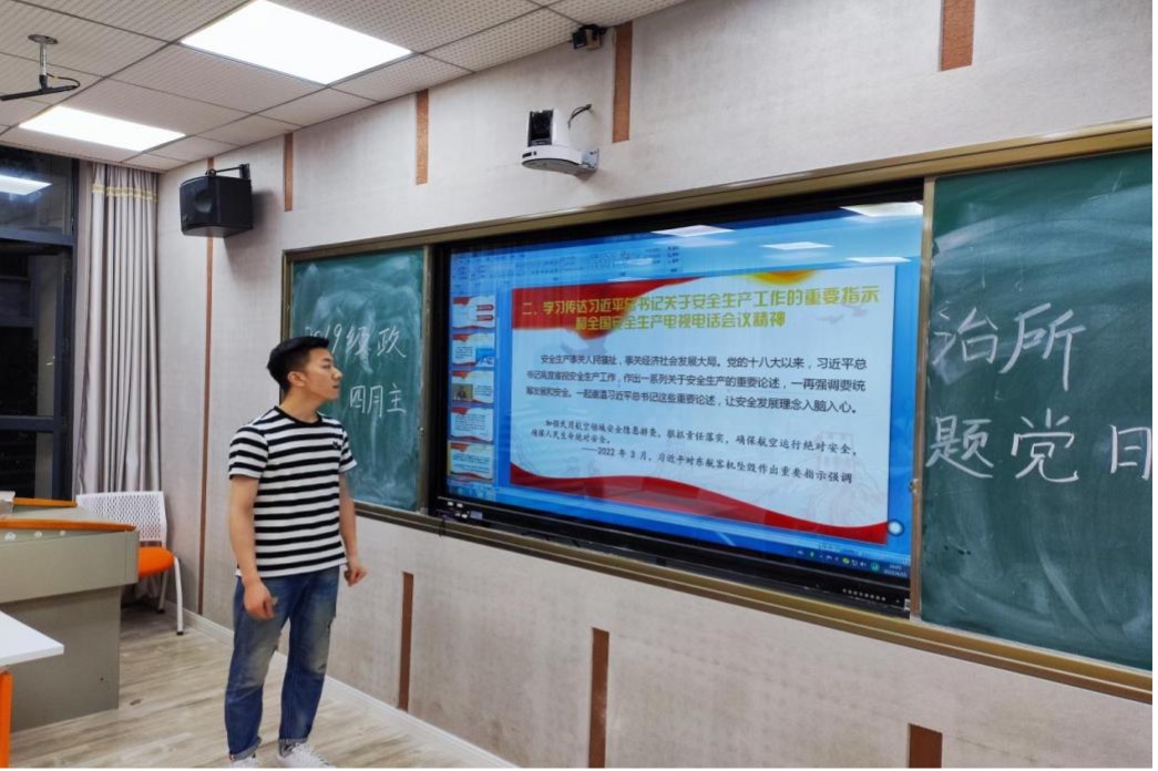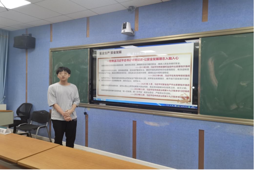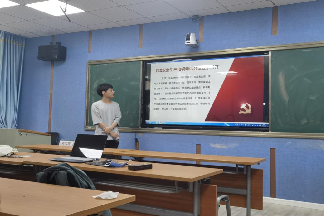关佩然同学带领大家重温习近平总书记从十八大以来关于安全生产的重要论述,这些论述集中体现了党坚持以人民为中心、坚持人民至上、生命至上的发展思想。随后,关佩然展示的大量的安全事故案例凸显安全工作的重要性。