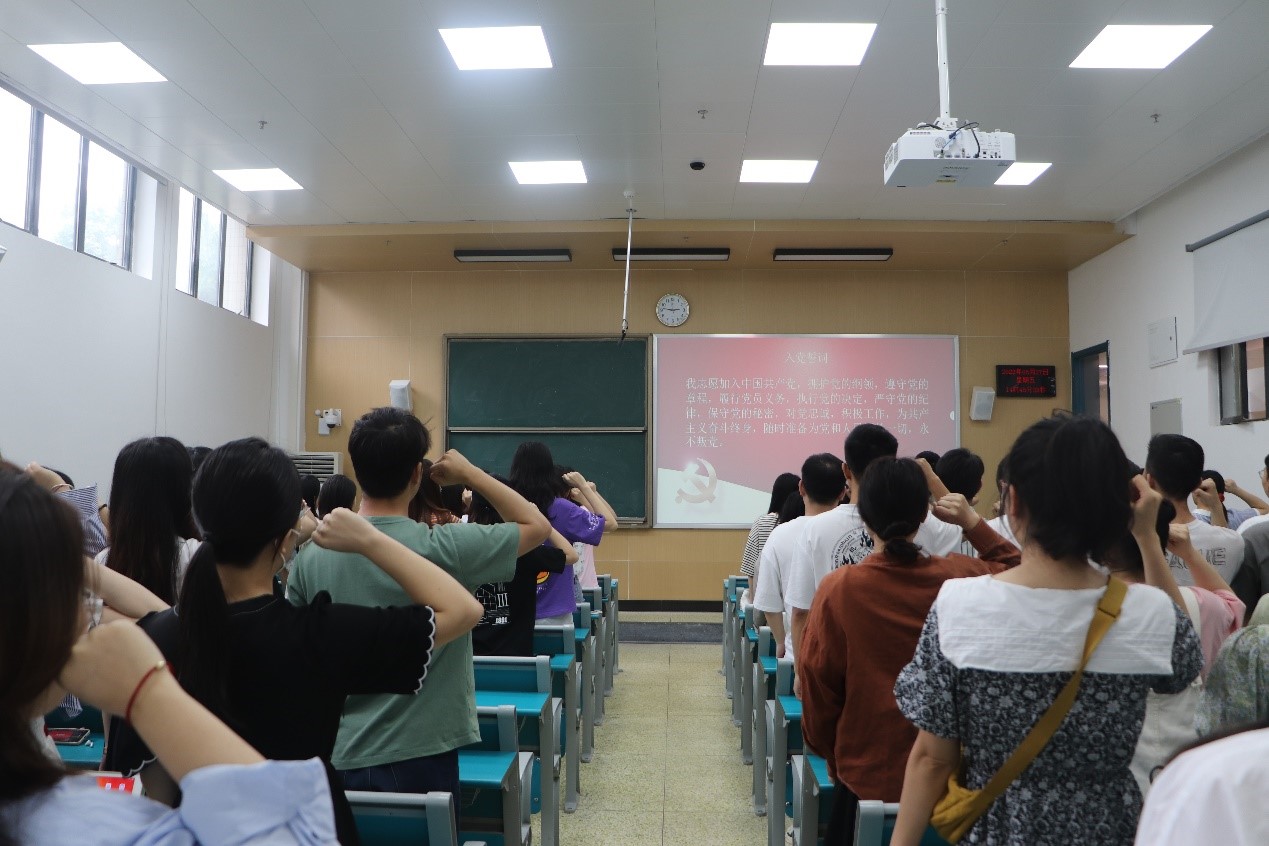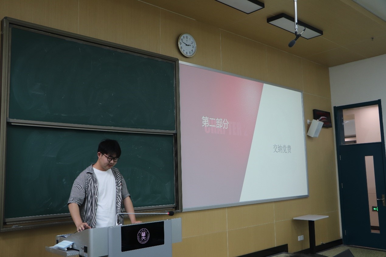 活动伊始,邓俊豪同志带领大家重温入党誓词。大家右手握拳,庄严地读出那早已烂熟于心的铮铮誓言,依然是满腔热忱。活动第二项,两个支部开展了党费交纳工作。邓俊豪同志强调,按时交纳党费是党员对党组织应尽的义务,是党员关心党的事业的直接表现。接着,邓俊豪同志向大家播放了人民日报制作的微视频《青年朋友的知心人》。党的十八大以来,习近平总书记始终立足于“确保党的事业薪火相传,确保中华民族永续发展”的深远考虑,指导青年成长和部署青年工作,习近平总书记多次到高校考察并与师生座谈,还多次给青年学生、青年志愿者回信。“年轻人不要总熬夜”、“人生的扣子从一开始就要扣好”、“未来属于青年,希望寄予青年”,从习近平总书记对青年的殷切嘱托中,我们就能真切感受到以习近平同志为核心的党中央对青年群体的关注和关心。