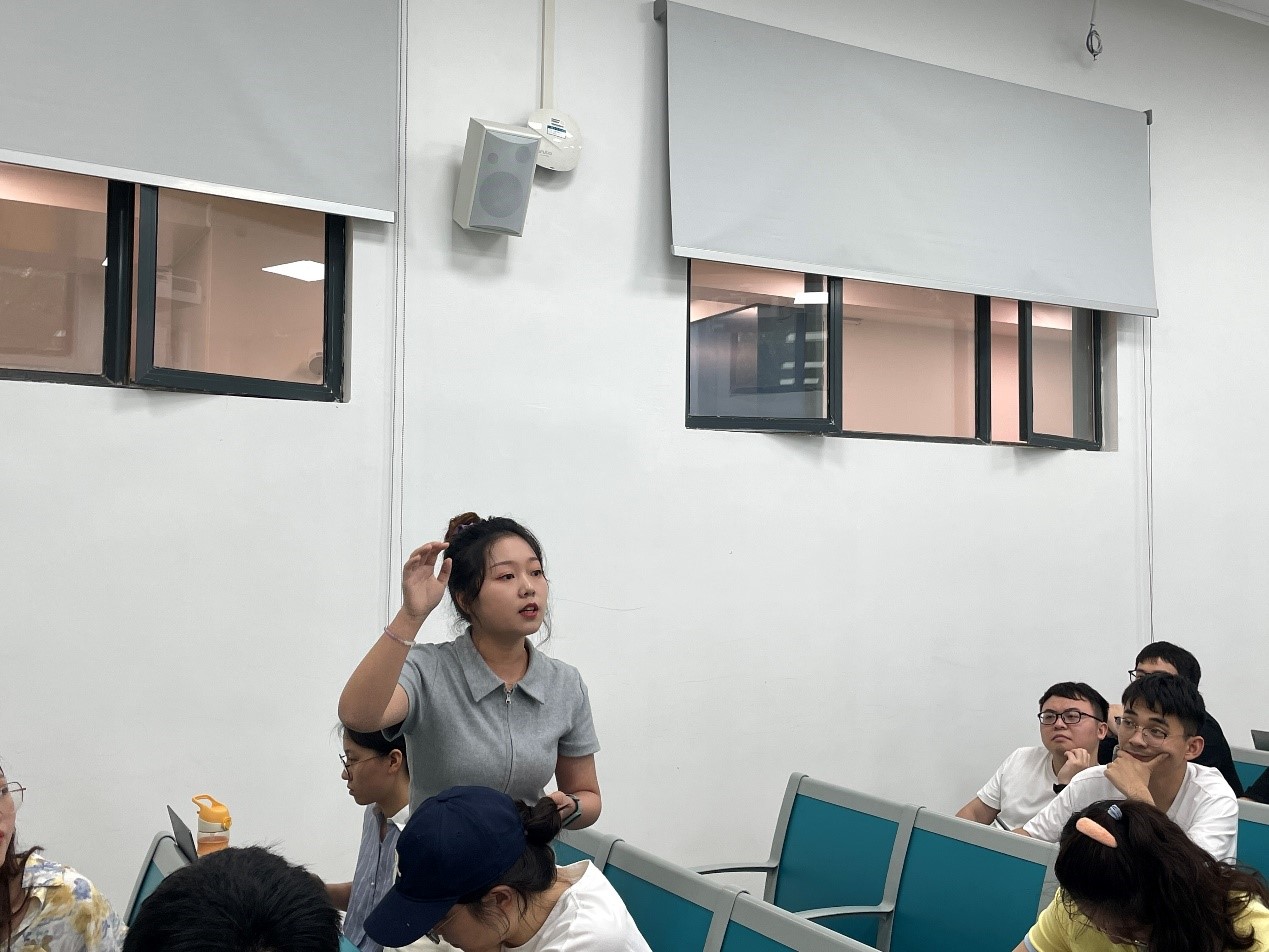活动进入第四项,由政治学系研究生第三党支部的陈映含同志领学习近平总书记考察中国人民大学时的重要讲话精神。首先,陈映含同志为大家播放一段视频作为引入。接着,她分别从“扎根中国大地办大学:让党放心 不负人民”、“大课程:‘思政课的本质是讲道理’”、“大命题:回答时代之题 彰显中国之理”、“大先生:‘经师’和‘人师’相统一”、“大熔炉:勇当开路先锋 争当事业闯将”五个方面详细讲解了习近平总书记在考察中国人民大学时的重要讲话内容。陈映含同志表示,习近平总书记本次重要讲话为我们的成长和发展指明了奋斗目标与前进方向,我们要不负习近平总书记的期望,努力做到“把对祖国血浓于水、与人民同呼吸共命运的情感贯穿学业全过程、融汇在事业追求中。”