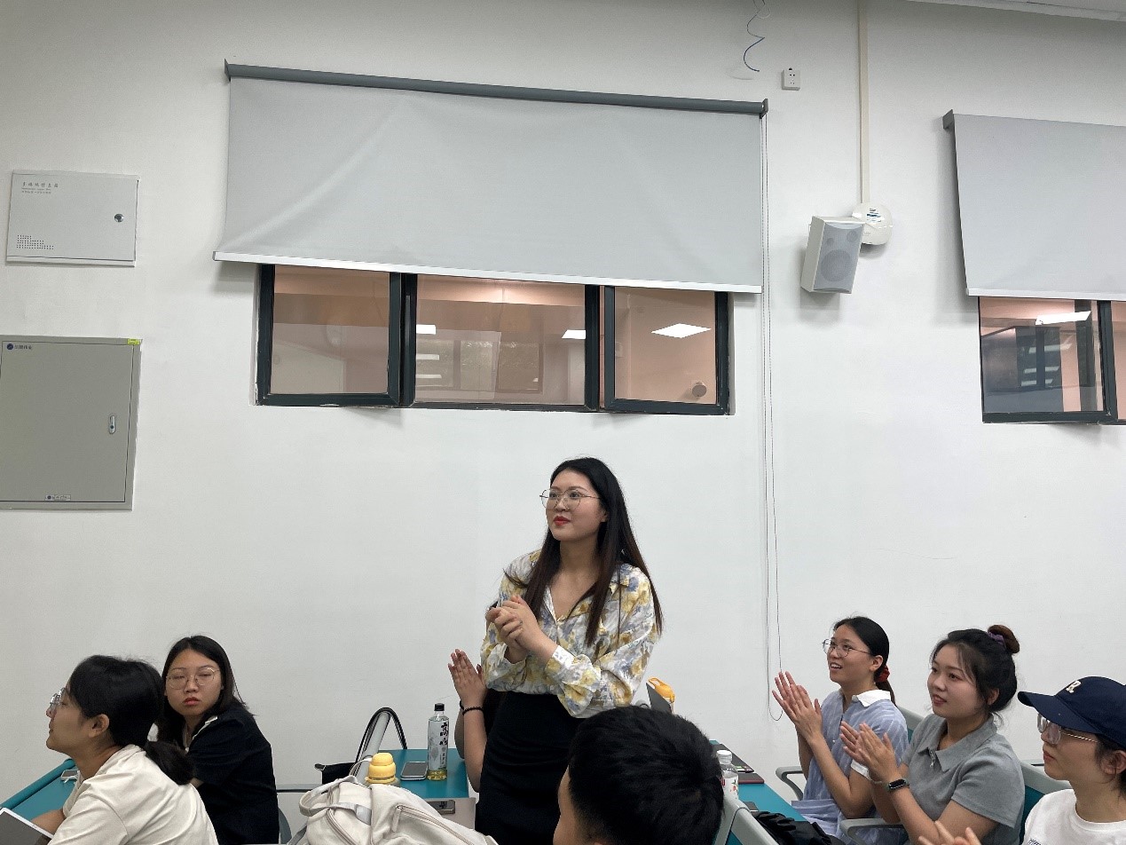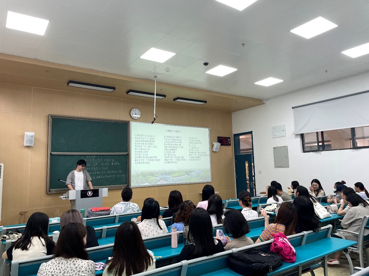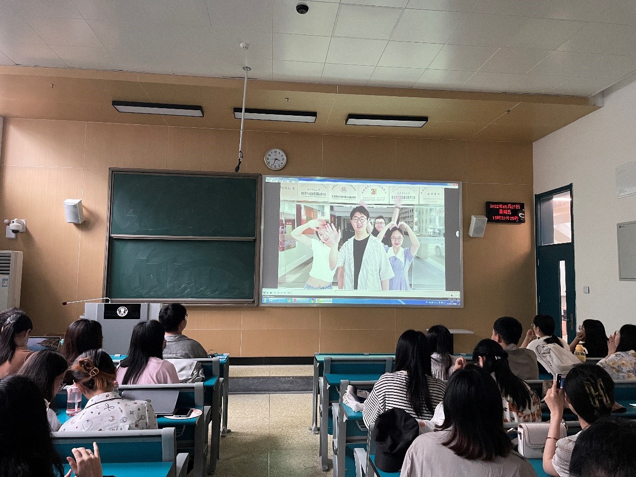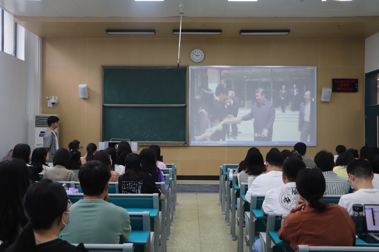 首先,邓俊豪播放了2020级政治学系为师兄师姐们精心拍摄的毕业祝福视频《师兄师姐我想对你说》。2020级政治学系全体成员参与此次拍摄,视频内容包括班委成员回忆了师兄师姐在支部建设和班级活动方面曾给予过的帮助和指导、各个导师组的同学对师门的学长学姐的的临别赠言、五个党小组分别拍摄的集体毕业祝福。一个个师兄师姐非常熟悉的校园场景、一句句朴实、幽默又饱含深情的话语,让师兄师姐在笑声中忆起了自己的读研生活,视频播放完毕后,持久热烈的掌声在教室内回荡。