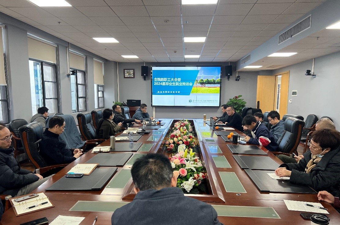 2023年12月29日下午,我院在1005会议室召开2024届毕业生就业工作推进会,学院领导班子全体成员、全院教职工参会,会议由学院党委副书记潘广炜主持。