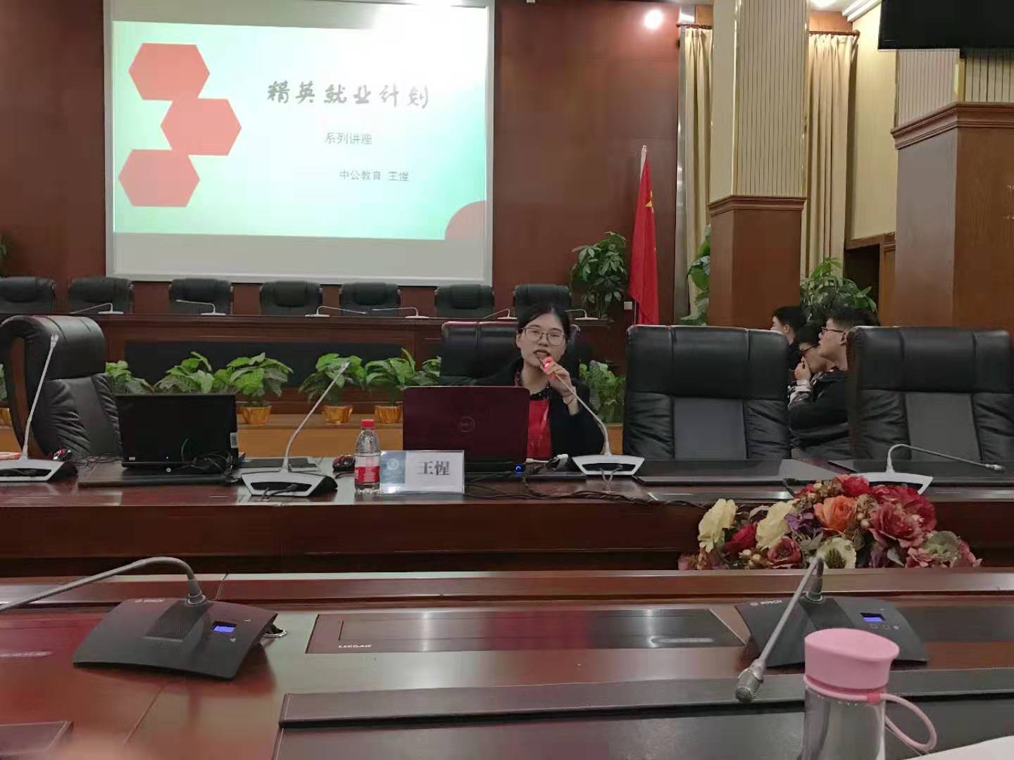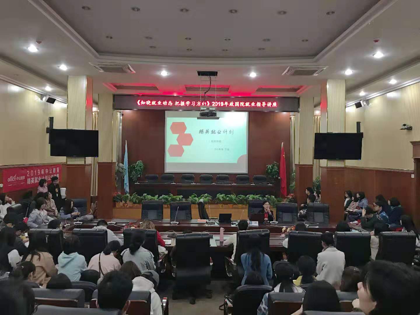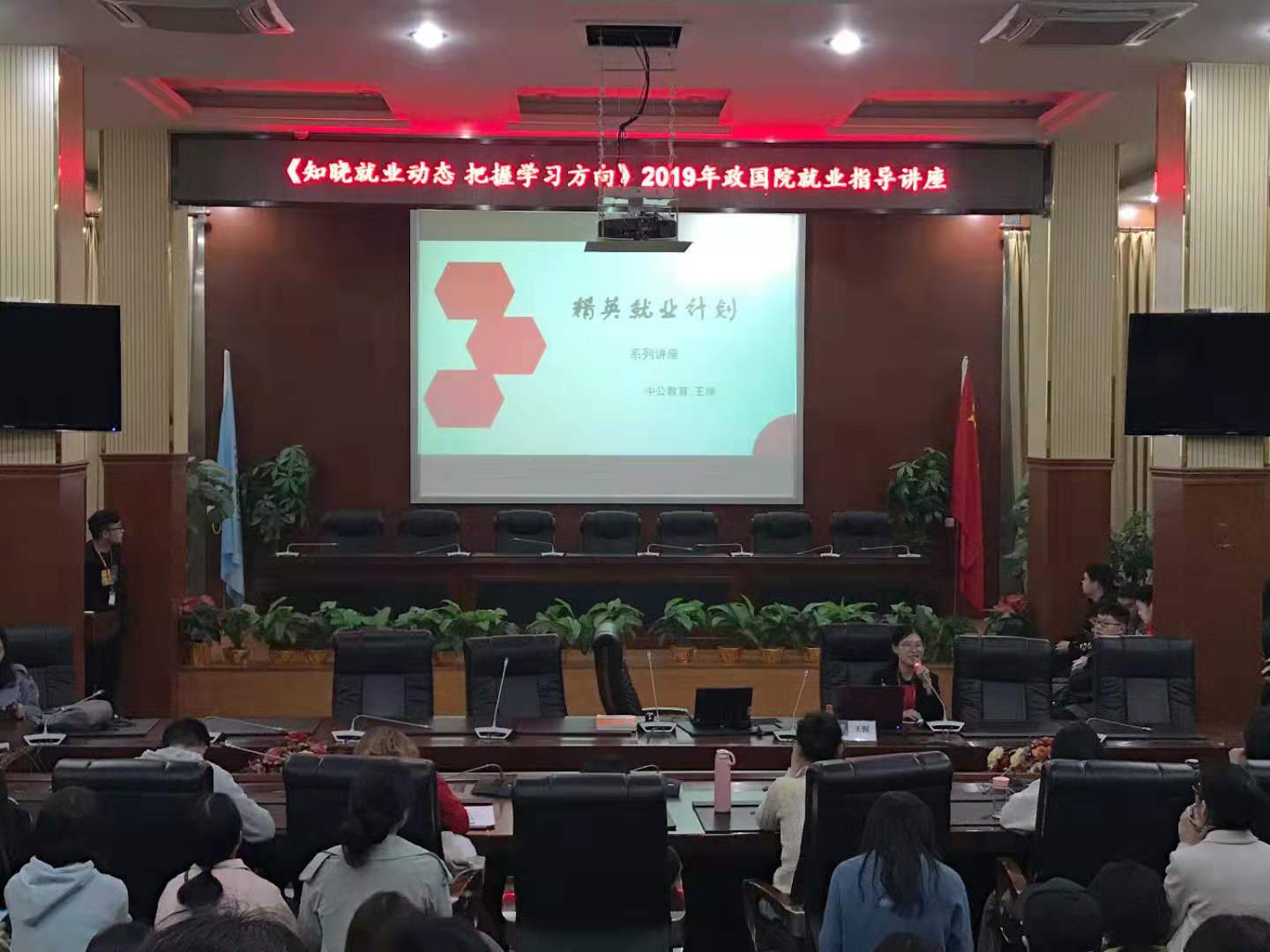 (通讯员:叶春霞)3月17日晚18:30,我院邀请到中公教育湖北考试研究院的资深讲师王惺老师在模拟联合国实验室开展了就业指导讲座。我院2017级硕士研究生、2018级硕士研究生、2018级本科生及部分毕业生共计150余人参与了本次讲座。