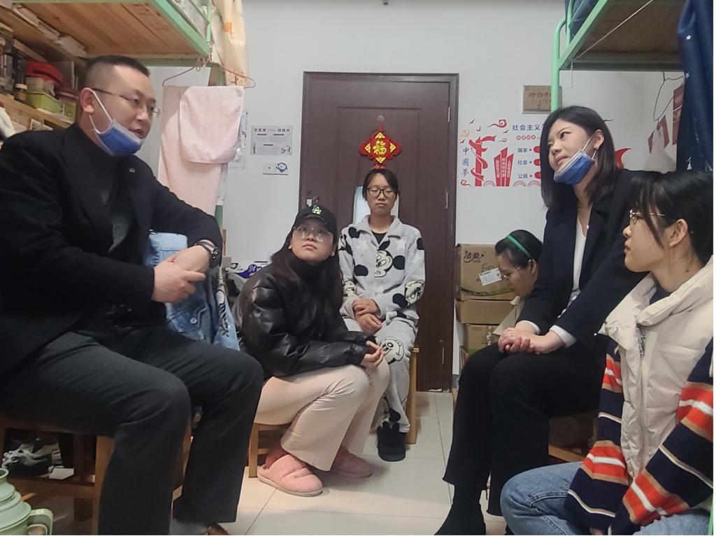 (通讯员:柯鹏灿;摄影:程瑞)3月18 日下午,政治与国际关系学院(以下简称:政国院)党委副书记潘广炜、研究生辅导员骆婉婷,赴国交四栋、元宝山一栋学生宿舍,走访我院毕业生寝室,与毕业生进行亲切座谈。