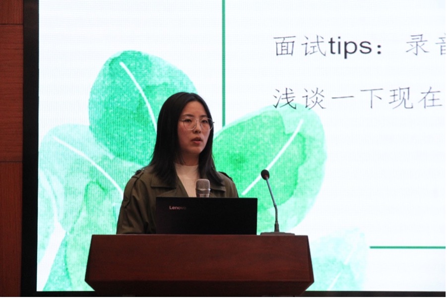 分享会伊始,骆老师进行就业指导。骆老师围绕就业政策解读、就业手续办理、就业心态调试三方面展开宣讲,引导毕业生积极了解就业政策,理性分析严峻的就业形势和自身优势,不等不怠,主动就业,开拓视野,勇于创新。