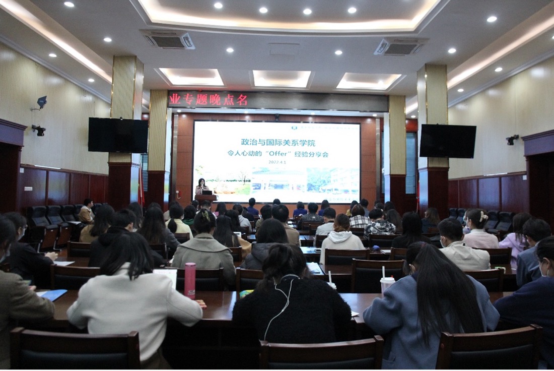 为了加深2022届毕业研究生关于升学和就业方向的认知,帮助其更好地进行未来规划。4月1日下午,政治与国际关系学院(以下简称:政国院)“令人心动的offer”经验分享会在文华公书林模拟联合国室举行,就业处指导老师周健出席本次分享会。活动由研究生辅导员骆婉婷主持,邀请优秀院友代表王晶、周鹏、李玲、伍相融、闻文和赖鸿进行经验分享。