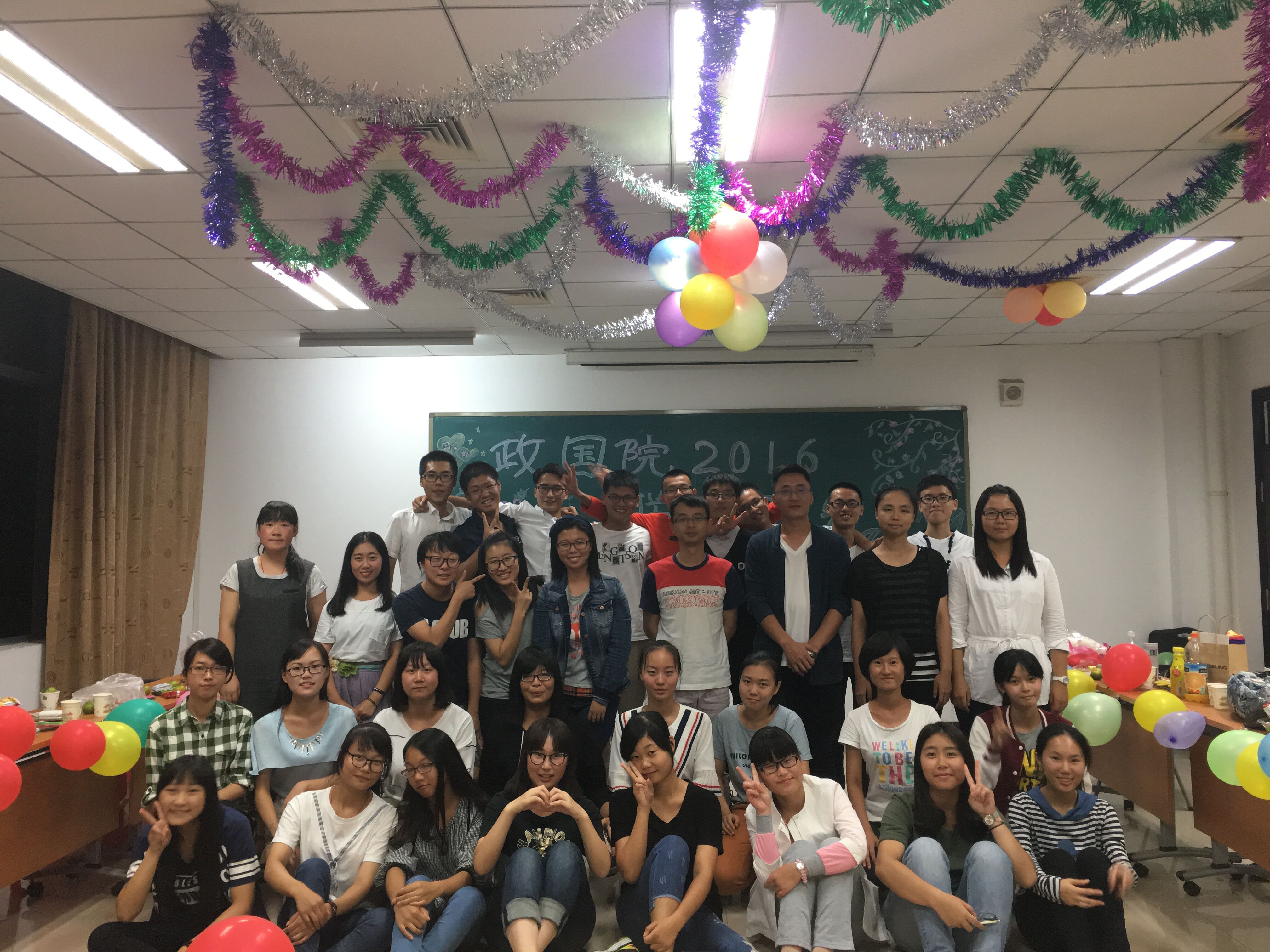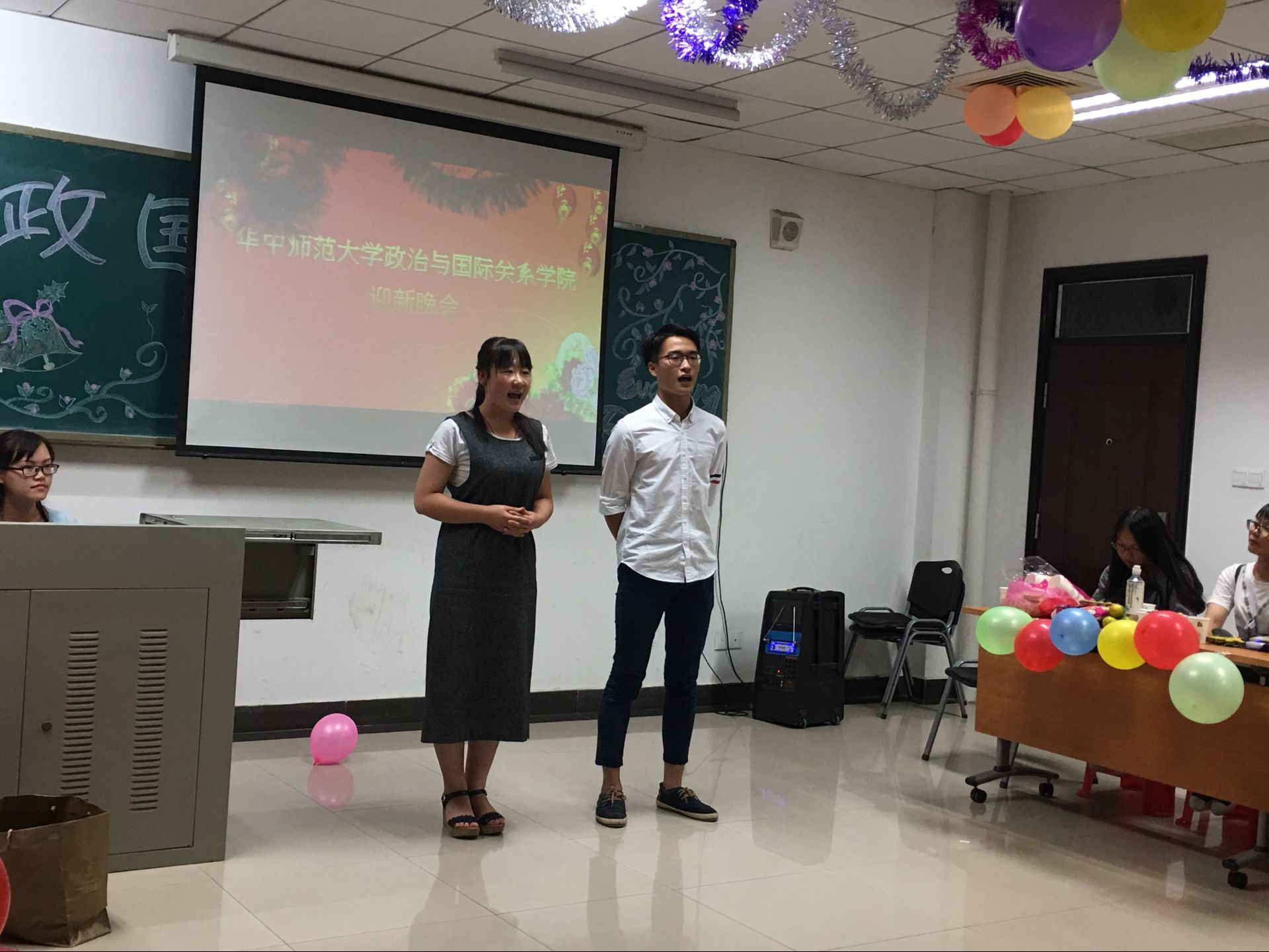 (通讯员:郄思俣 邱心怡)10月8日晚上七点,政治与国际关系学院2016级本科新生在我院313教室举办联谊晚会,班主任钱道赓副教授、辅导员冯连军老师及部分政国院研究生到场观赏此次晚会。在暖场音乐《渴望光荣》结束后,主持人郑伊翔、贾晓丽共同拉开了联谊晚会的序幕。
