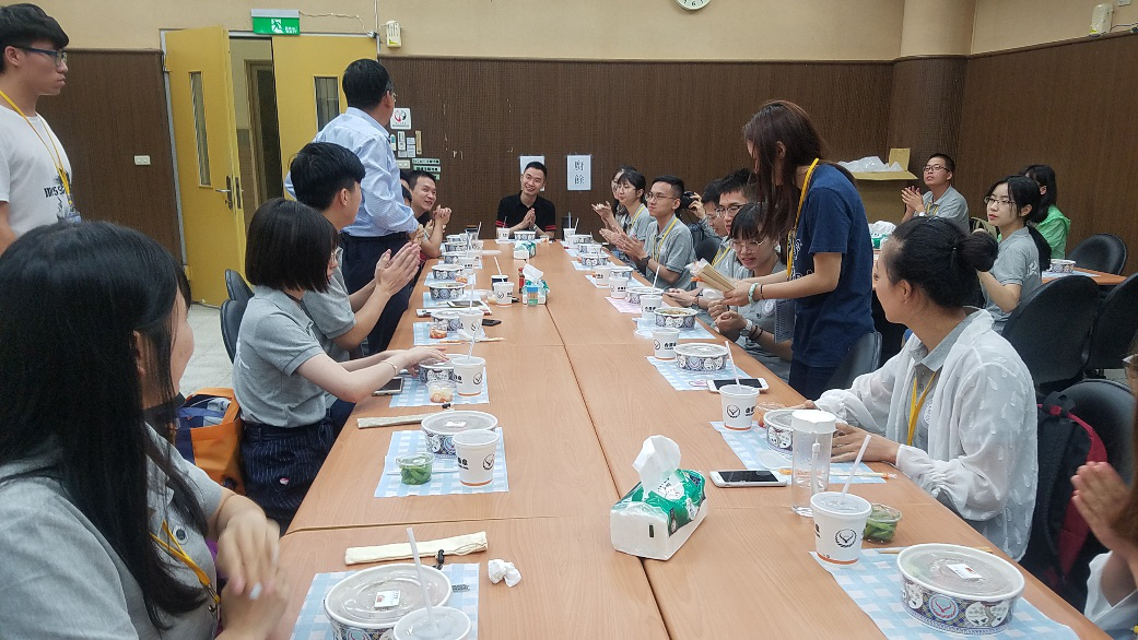 午餐时间,政治与国际关系学院 “知·行”暑期社会实践队全体成员有幸与陈德昇先生共进午餐,同学们热情地向陈德昇先生分享了自己在台湾政治大学短短两天的所见所闻、所情所感。午餐会结束后,小组成员围坐在一起,向台湾的小伙伴们介绍自己家乡的风土人情,增进友谊。此外,主办方组织夏令营同学们进行了一次创意航拍,用航拍机记录下同学们青春洋溢的笑脸。至此,联谊会在一片片欢声笑语中进入尾声。