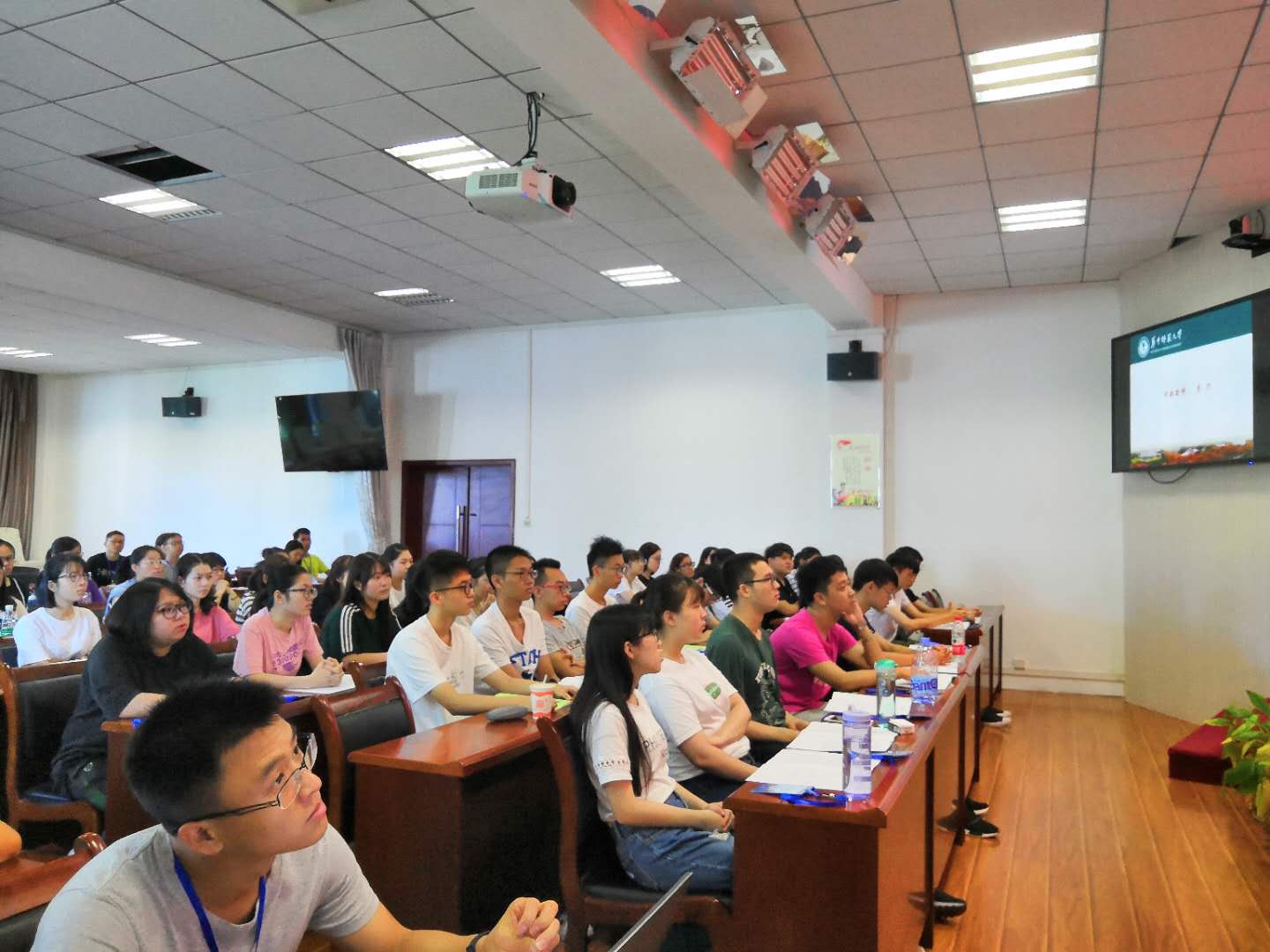 活动临近尾声,同学们一起观看了华中师范大学官方宣传片。“南湖浪涌、桂香灵动”宣传片展示了华中师范大学的历史、发展、人文底蕴、学术精神、师资力量、校园氛围,让港澳台新生对华中师范大学有了深入的了解,让桂子山上的新主人冥冥之中升起了一股爱校、护校之情。
