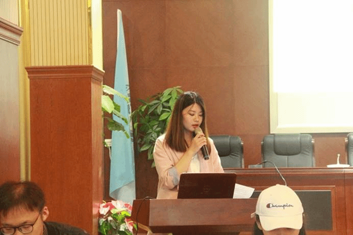 在全体起立奏唱中华人民共和国国歌后,我院团委书记、研究生辅导员骆婉婷老师发表讲话,她充分肯定了18届研究生会全体成员的辛勤努力,对于研究生会的定义,她表示研究生会是学院党委领导下的研究生自我管理、自我服务、自我教育、自我监督的群众性自治组织,发挥连接学院与学生的桥梁与纽带的重要作用。她引导竞聘者们思考如何处理好工作与学习之间的关系,如何为同学们提供更好的服务,如何发挥模范带头作用,以及如何宣传学院与研究生群体的正面形象。最后,骆老师寄语新的一届研究生会成员:“希望大家不怕苦不怕累,携手同行,奋力拼搏,在新的工作中有所体会、有所思考、有所收获。”