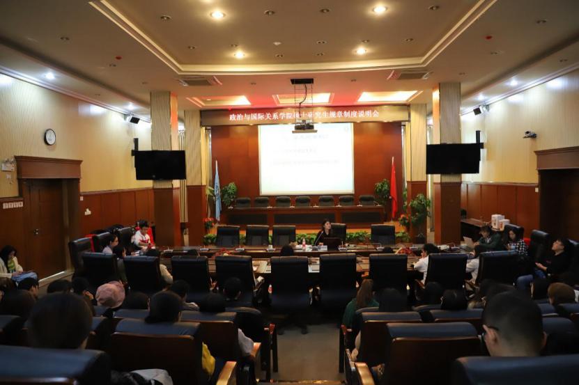 (通讯员 王秋香)为营造生动活泼、严谨有序的学院氛围,加强18级硕士研究生对学院规章制度的学习,更好助力我院一流学科的建设。11月18日下午2点,我院在模拟联合国会议室召开2018级硕士研究生学院规章制度说明会。本次会议由研究生辅导员、团委书记骆婉婷老师主持,18级全体硕士研究生参加。