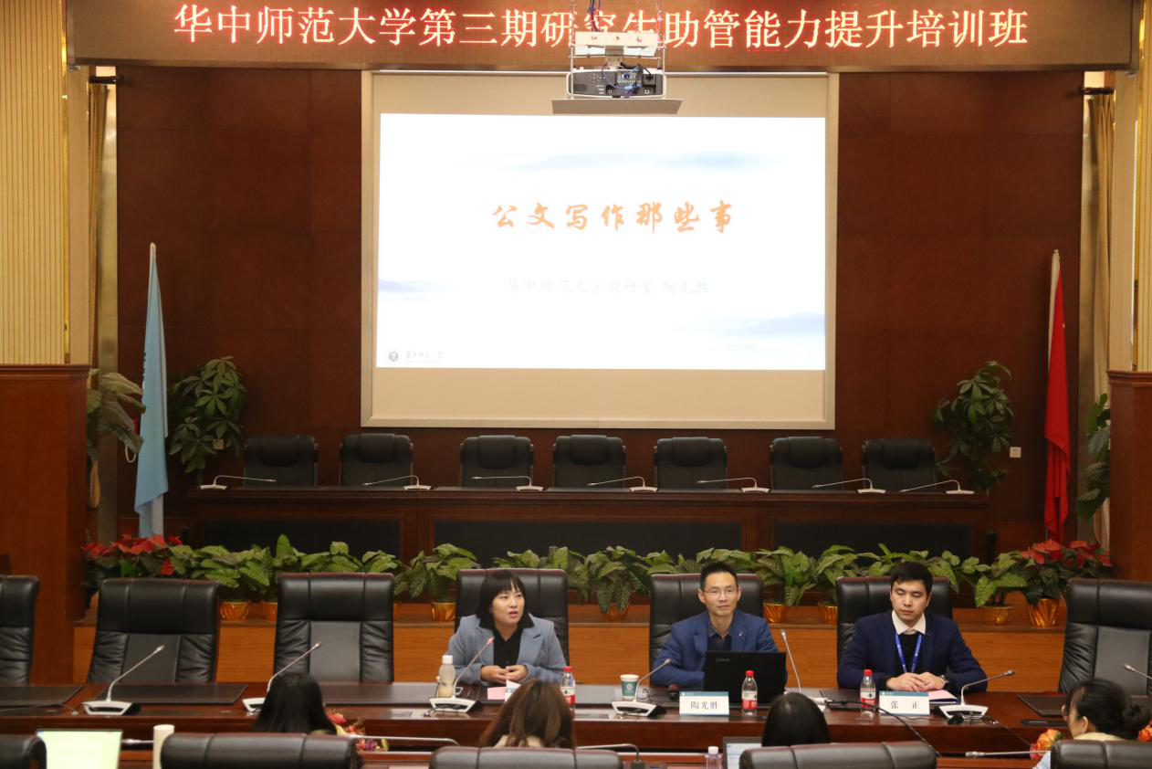 (通讯员 常馨月)为提升我校研究生助管的文书写作能力、增强研究生助管的综合素养,12月6日下午,“研究生助管公文写作应知应会”课程在文华公书林模拟联合国会议室开讲。本次课程由我校政策法规研究室副主任陶光胜老师主讲,政治与国际关系学院党委副书记秦恒出席,政治与国际关系学院辅导员张正主持,第三期“研究生助管能力提升培训班”全体学员参加了本次课程学习。