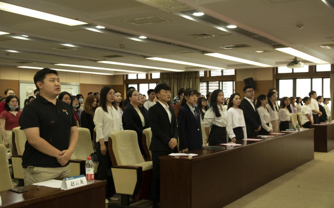 大会第一项议程,全体成员起立奏唱中华人民共和国国歌,在庄严肃穆的国歌声,政治与国际关系学院第二十一届研究生代表大会暨新生适应性教育大会正式开始!
