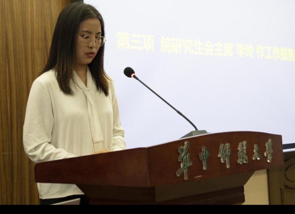 第三项议程,由院第二十届研究生会主席李玲代表第二十届研究生会做工作报告。她表示,在过去的一个学年里,第二十届研究生会在校党委、研究生院、校团委的正确领导下,在学院党委和领导老师的悉心指导和关怀下,在全院研究生的大力支持下,始终坚持以“全心全意为同学服务”为宗旨,遵循“服务、团结、高效、创新”的工作理念,坚持“倡导学术创新、繁荣校园文化、提高研究生素质”的工作思路,组织开展了一系列学生活动,锻炼了研究生干部的组织协调能力,营造了浓厚的校园文化氛围,丰富了同学们的课余生活。在报告的最后,李玲代表第二十届研究生会向所有支持和帮助研究生的领导、老师、同学表示最诚挚的感谢,并预祝新一届研究生会以崭新的面貌开拓出更加美好的未来。