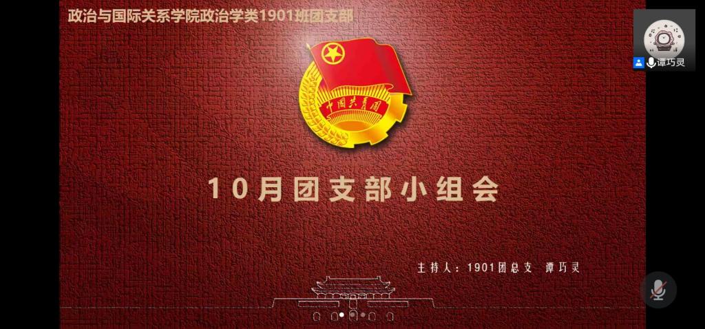 (通讯员 冯思诺)为切实加强团员青年的凝聚力、引领力,锻炼团小组组长的组织能力能力,深入挖掘潜力,10月31日晚上,我院政治学类1901团支部通过线上腾讯会议的形式,以团小组为单位召开团支部小组会,并在会后对团员进行了民主评议。