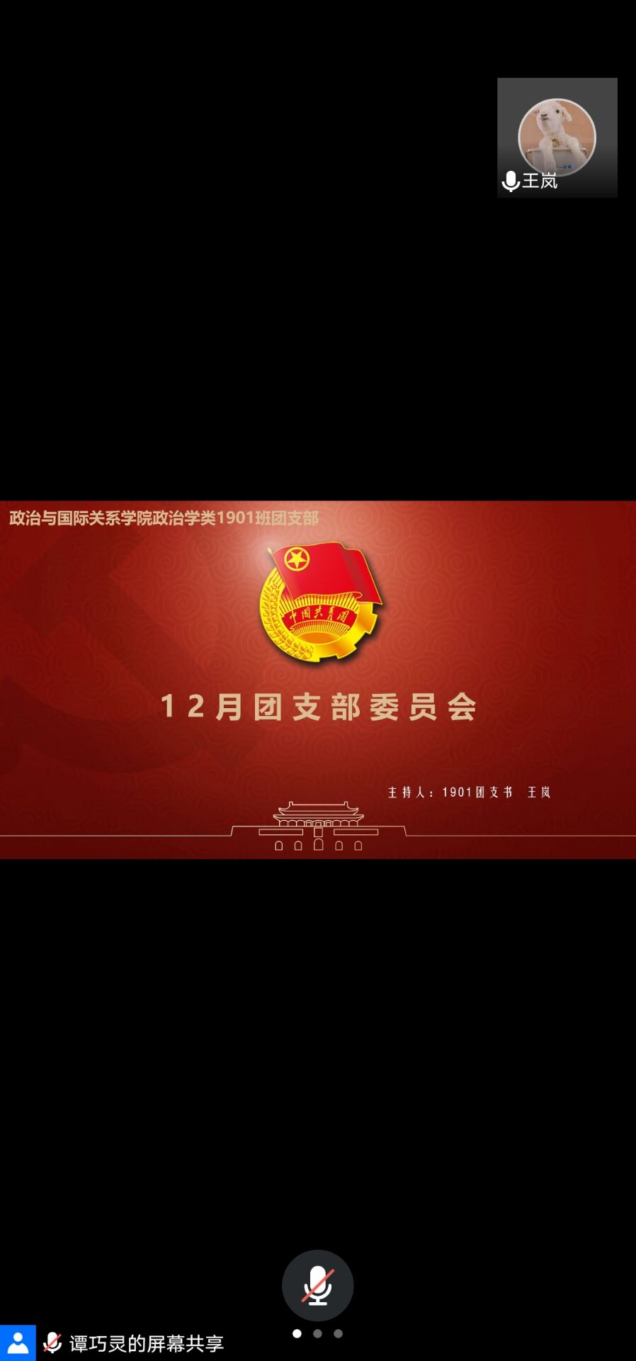 (通讯员 冯思诺)为切实加强团员青年的凝聚力、引领力,锻炼团小组组长的组织能力能力,深入挖掘潜力,12月15日晚上,我院政治学类1901团支部通过线上腾讯会议的形式,以团小组为单位召开团支部委员会,总结上一阶段情况,强调团支部纪律,支部委员以实际行动带领班级同学刻苦学习,促进同学全面发展。