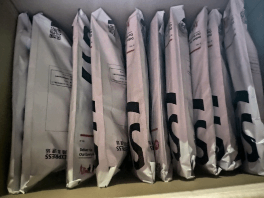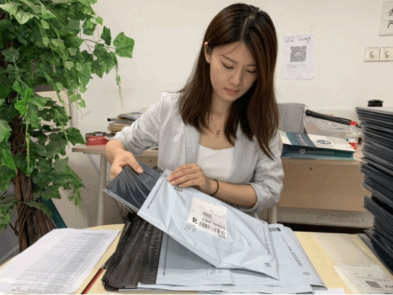 老师们要十分小心的用两个快递袋包装