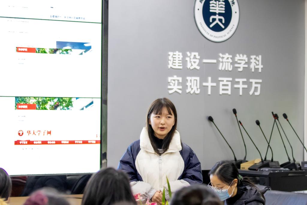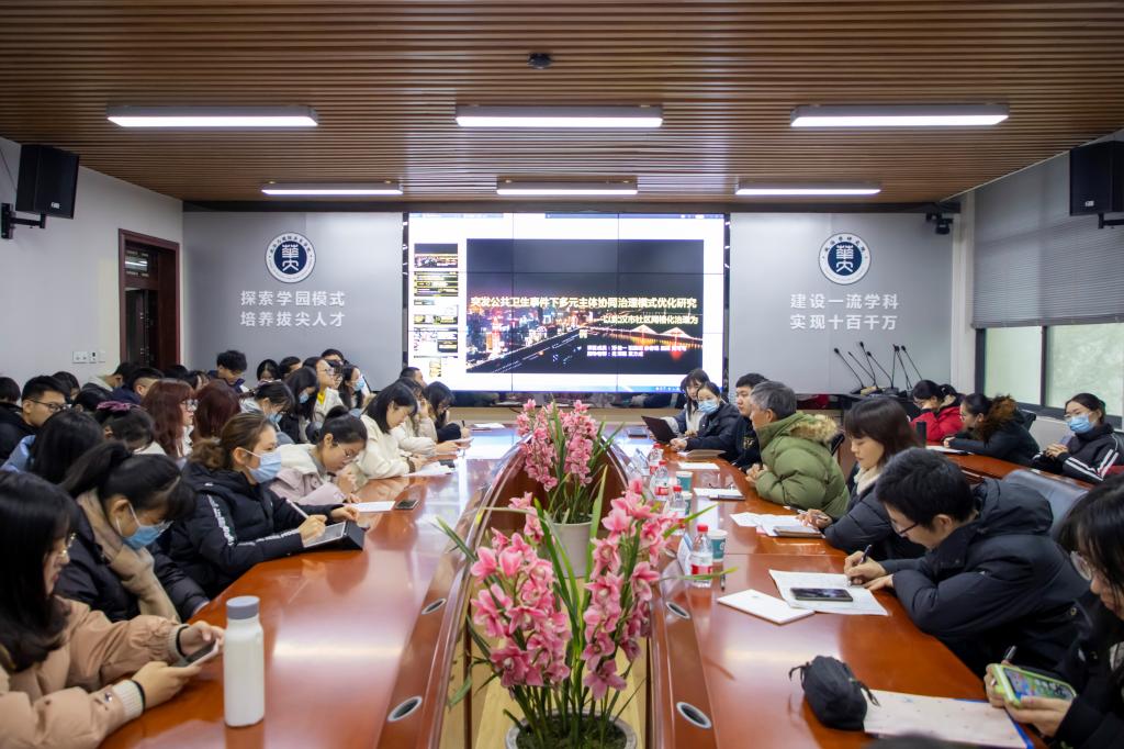 随后,邓佳一同学以PPT的形式讲解了我院申报的挑战杯校级“攀峰项目”——《突发公共卫生事件下社区多元主体的协同治理模式研究——以武汉市社区网络化治理为例》。该项目由肖泽磊副教授、袁方成教授指导,项目成员包括邓佳一、祝嘉聪、余春焰、梁滔以及黄可可同学。据悉,该项目已经产生一份研究报告,发表一篇学术论文《突发公共卫生事件下社区多元主体协同治理模式优化探究》,并获得了中华网等六家校内外媒体的新闻报道。