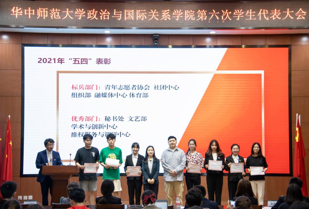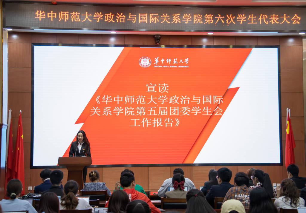 (通讯员 汪彤)5月27日,华中师范大学政治与国际关系学院(以下简称:政国院)第六次学生代表大会于文华公书林三楼模拟联合国会议室举行。本科生辅导员赵云龙、魏露老师受邀出席,团委副书记王翊臣同学担任主持人,第六届学生会全体成员参加大会。