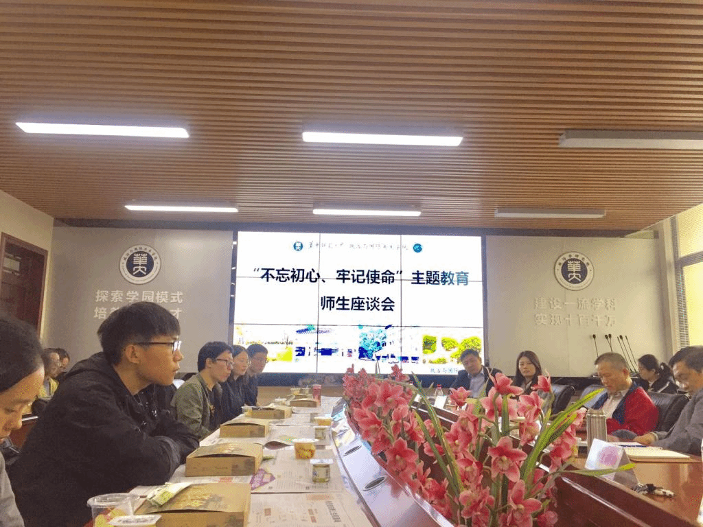 (通讯员 陶冶 王雨)为提高我院教育培养水平、增进师生情谊、构建良性的导学关系、助力一流学科建设, 10月25日中午,在309会议室举行“不忘初心,牢记使命”主题教育师生座谈会。我院党委书记段维、党委副书记秦恒、副院长王建国、副院长黄辉祥、钱道赓老师、张弦老师、研究生辅导员骆婉婷出席,本科生辅导员赵云龙主持,学生代表参加。