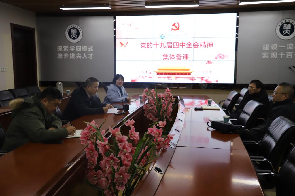 胡宗山院长针对党的十九届四中全会精神进行内容诠释与细节解读。全体参会教职工一致认为,党的十九届四中全会是我们党站在“两个一百年”奋斗目标历史交汇点上召开的一次十分重要的会议。会上所做出的关于坚持和完善中国特色社会主义制度、推进国家治理体系和治理能力现代化若干重大问题的决定,是党中央审时度势,从战略和全局的高度作出的重大决策,为我们党带领全国各族人民走向未来、赢得未来构筑了可靠的制度大厦,也从制度上为贯彻落实党的十九大提出的党的基本方略提供了根本保障,为人类政治文明贡献了中国智慧和中国方案。