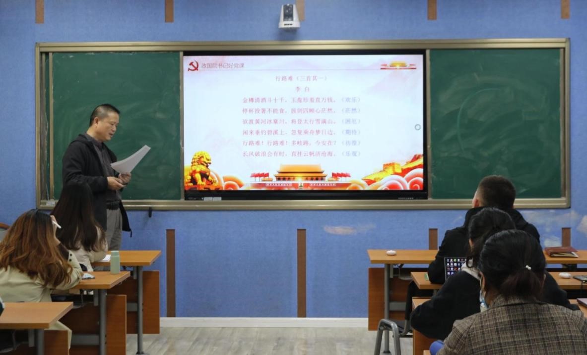 随后,胡宗山教授、王建国教授、舒新教授、余维海教授进行了课堂讲授。胡宗山教授以《学术视角的百年党史》为题,带领大家从专业的角度出发,学习中国共产党的百年党史,感知中国共产党的百年奋斗。王建国教授以坚持道路自信为切入点,指出中国特色社会主义道路是科学的路、开放的路和包容的路,这条路是历史和人民的选择,让社会主义焕发出新的生机和活力,让广大发展中国家看到了新的现代化方案,为人类社会发展提供了新的道路;舒新教授着重讲了习近平新时代中国特色社会主义思想中的关于教育的论点,包括教育的目的,教育的方式,教育的理念等内容;余维海老师以“认真学习党章,维护党章权威”为主题梳理了党章的发展历史。
