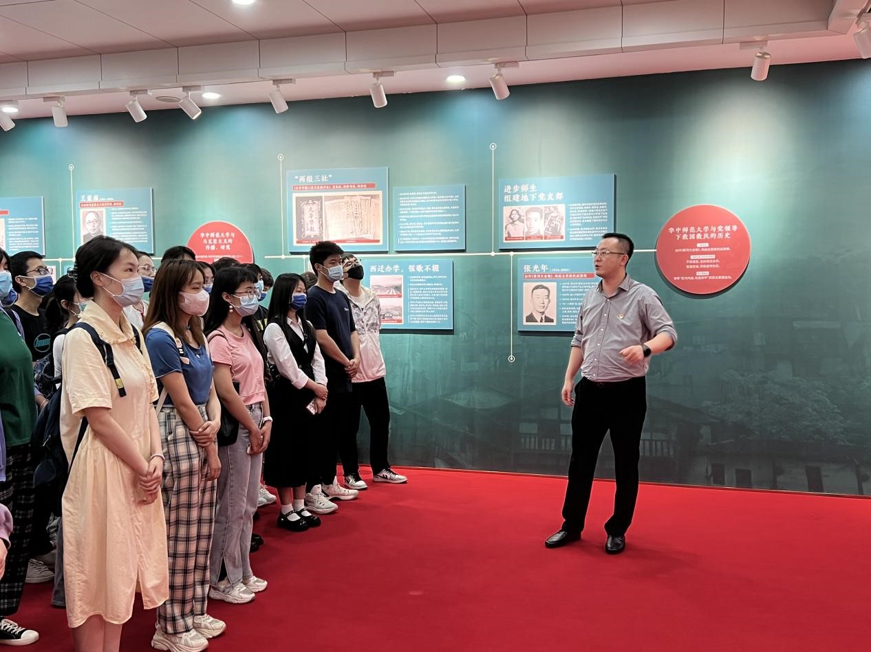 院党委副书记潘广炜结合学校红色印记展为学员们讲述了百廿华师人坚守教育报国的初心使命。从华师更替沿革到先辈楷模丰功伟绩,从选址桂子山建设新校园到立德树人指引服务国家建设大局,从领导关怀学校改革发展到强化思想引领培养合格人才,从学科带头人开拓创新到吾辈赓续传承薪火相传,克难奋进、潜心育人、追求卓越的华师奋斗史在潘广炜副书记的话语中得以精彩注解,创校、西迁、治学、大爱的华师精神谱系在学员们的心头久久回荡。
