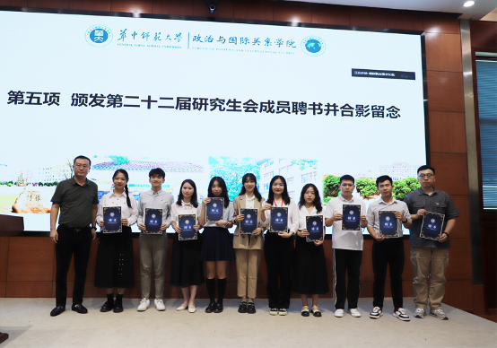 第二十二届研究生会主席付睿思向大会作工作报告,报告总结归纳了过去一年研究生会的工作情况,分析了目前工作中仍存在的不足与问题,并对新一届研究生会的工作提出了完善工作制度、创新活动形式、提高工作效率等三方面希望。与会领导为第二十二届研究生会成员颁发聘书并合影留念。