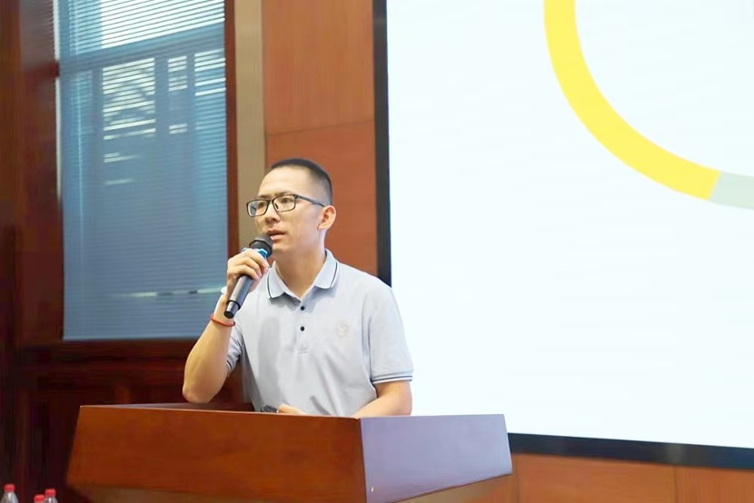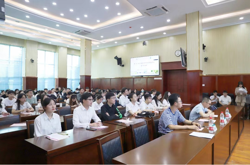 院研究生辅导员沈国成作研究生新生适应性教育讲话。他主要围绕学校机构设置、学院规章制度、学生安全教育等方面展开讲解,希望同学们研途三载,不负韶华,砥砺前行,用青春的力量,成就自己的梦想。