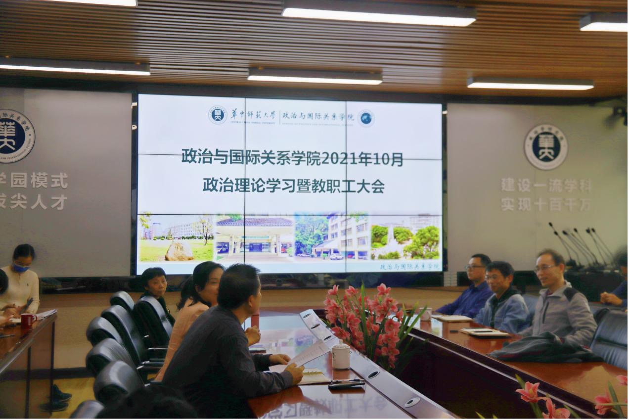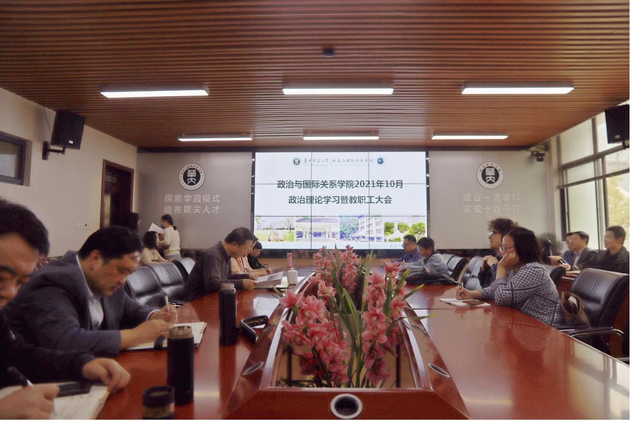(通讯员:车孟书;摄影:黄榆杰、林竣旸)10月29日下午14:00,政治与国际关系学院(以下简称:政国院)于313会议室召开2021年10月政治理论学习暨教职工大会。本次会议由段维书记主持,全体教职工参加。