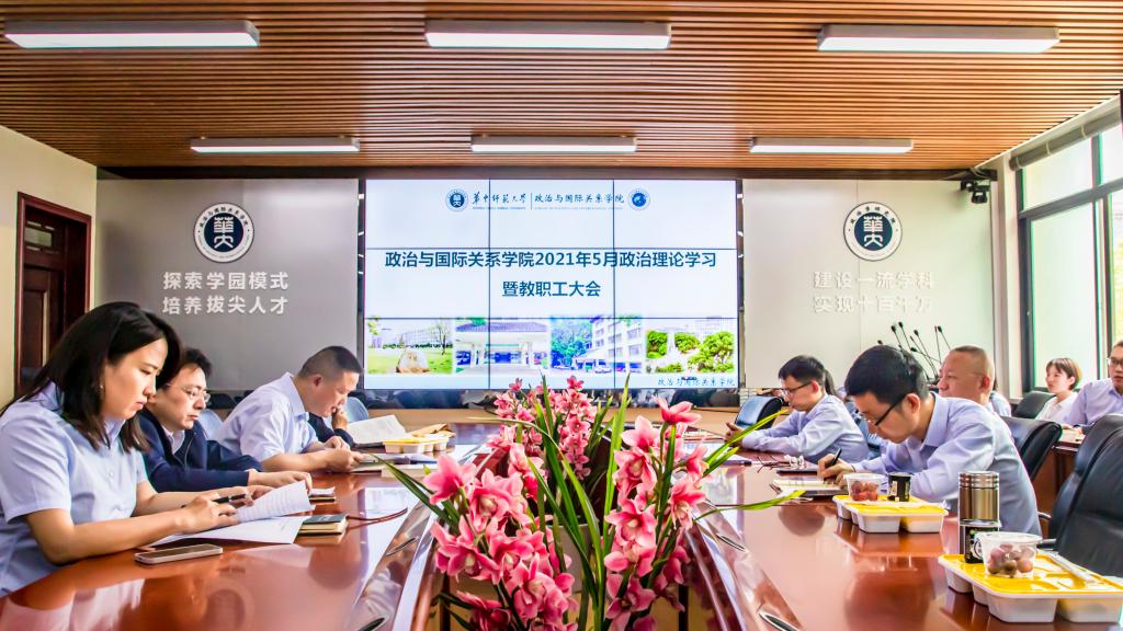 (通讯员 郑文惠)5月27日中午,政治与国际关系学院(以下简称:政国院)于313会议室召开2021年5月政治理论学习暨教职工大会。本次会议由段维书记主持,全体教职工参加。